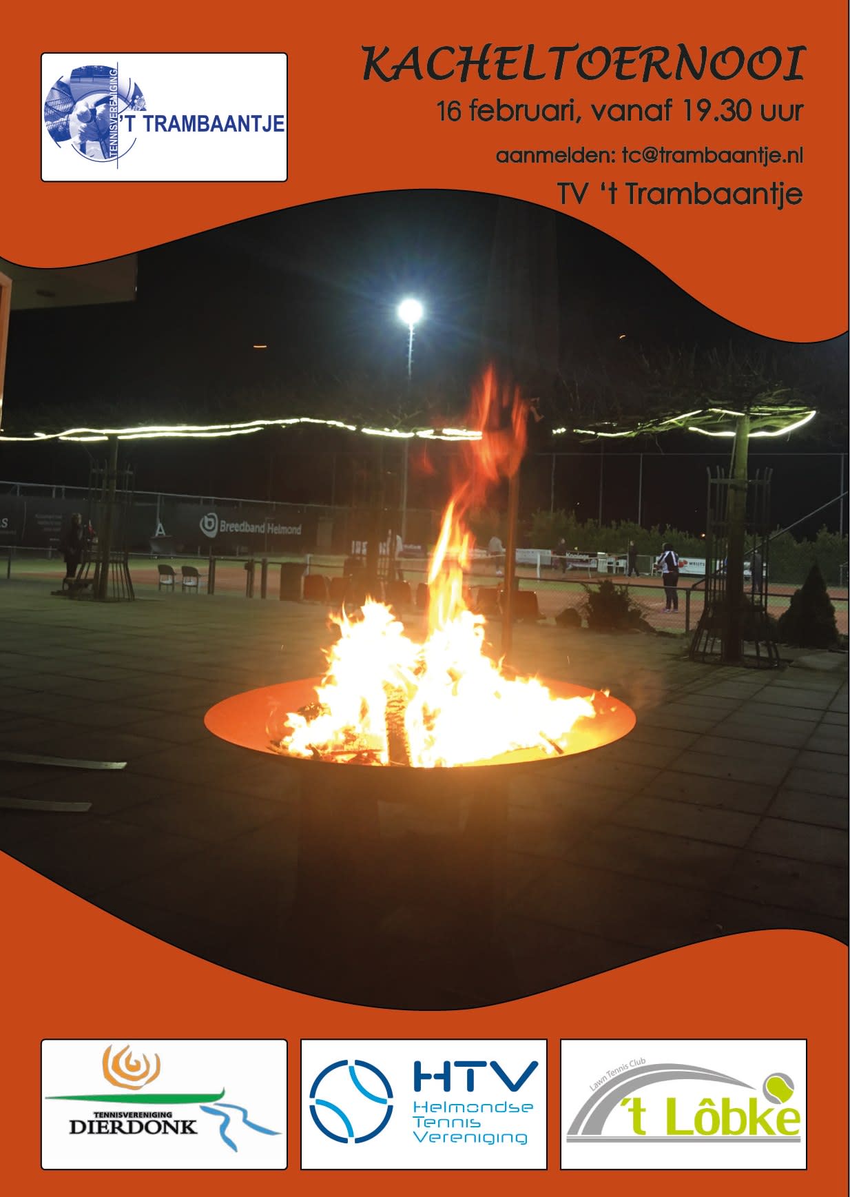 De tennisverenigingen TV Dierdonk, HTV, ’t Lôbke en het ‘t Trambaantje hebben onlangs besloten om enkele tennisactiviteiten gezamenlijk te organiseren. 't Trambaantje bijt hierbij de spits af en organiseert op 16 februari het altijd gezellige Kacheltoernooi. Alle leden van de vier verenigingen zijn van harte welkom. Dus doe mee!